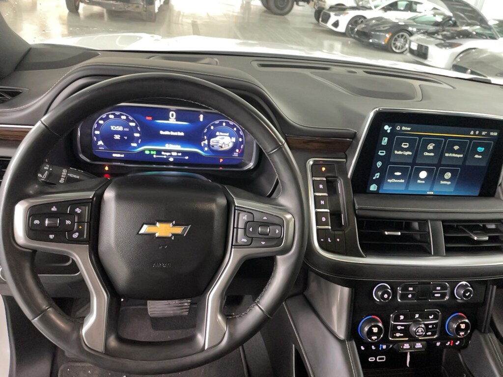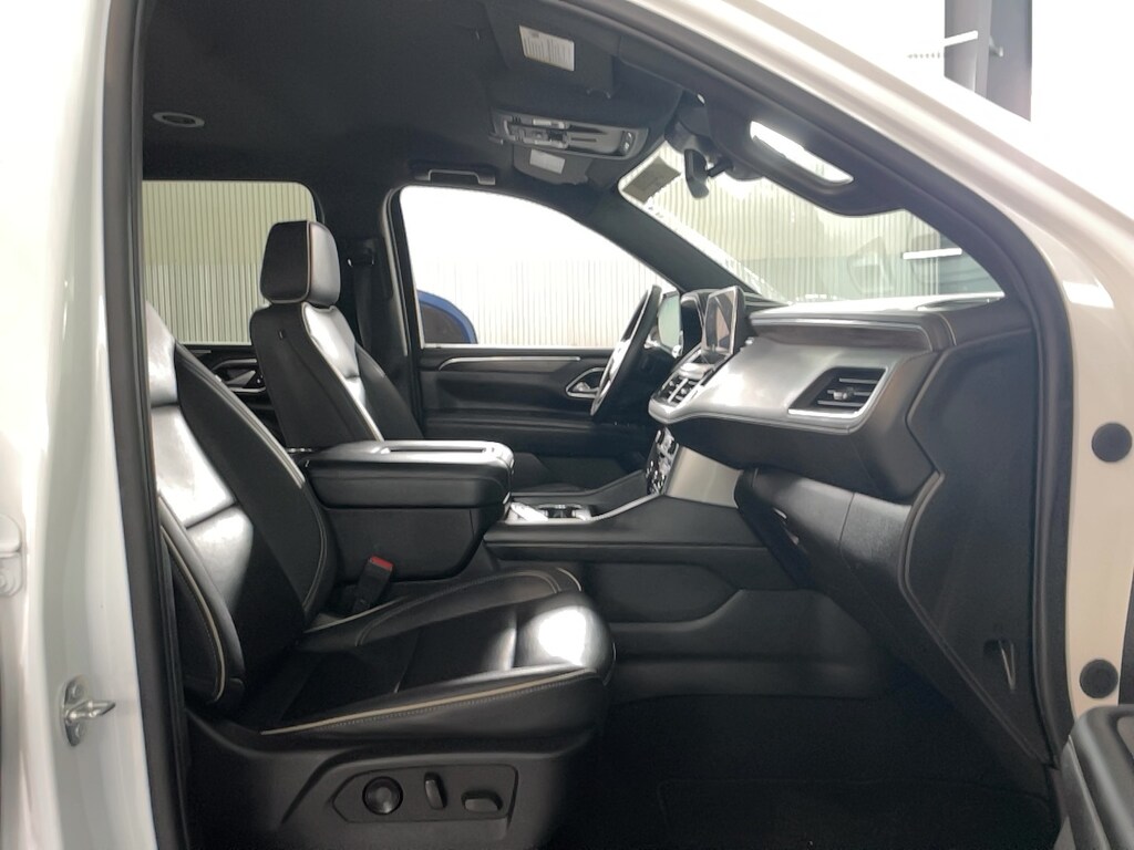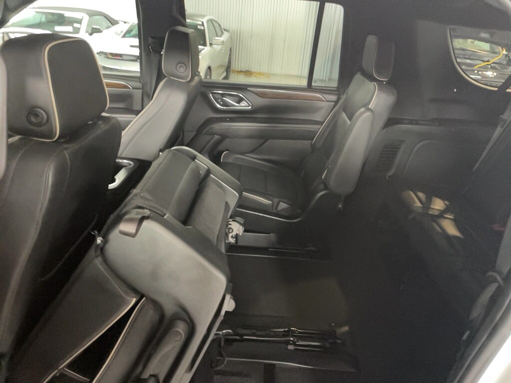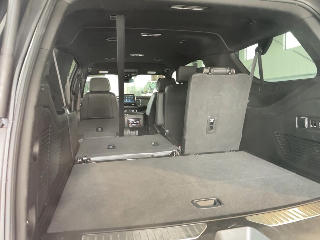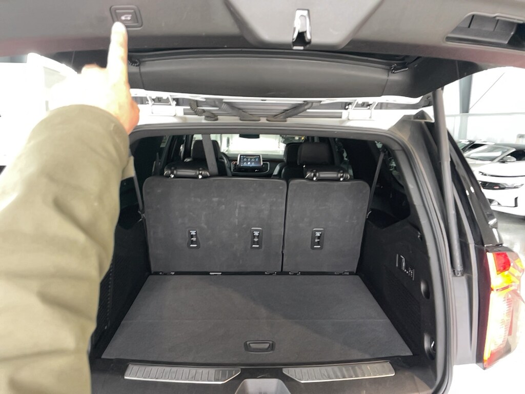 10 Speakers, 1st & 2nd Row Color-Keyed Carpeted Floor Mats, 2-Speed Active Electronic AutoTrac Transfer Case, 20" x 9" Polished Aluminum Wheels, 3rd Row 60/40 Power-Folding Split-Bench, 3rd row seats: split-bench, 4-Wheel Disc Brakes, ABS brakes, Adaptive suspension, Air Conditioning, AM/FM radio: SiriusXM with 360L, Apple CarPlay/Android Auto, Auto High-beam Headlights, Auto-dimming door mirrors, Auto-Dimming Inside Rear-View Mirror, Auto-leveling suspension, Automatic temperature control, Bose 10-Speaker Surround w/CenterPoint, Brake assist, Bright Front & Rear Door Sill Plates, Bumpers: body-color, Chrome Door Handles w/Body-Color Strip, Chrome Mirror Caps, Color-Keyed Carpeting Floor Covering, Compass, Delay-off headlights, Driver & Front Outboard Passenger Airbags, Driver door bin, Driver vanity mirror, Dual Exhaust System, Dual front impact airbags, Dual front side impact airbags, Electronic Stability Control, Emergency communication system: OnStar and Chevrolet connected services capable, Enhanced Driver Information Center, Floor Console, Four wheel independent suspension, Front anti-roll bar, Front Bucket Seats, Front Center Armrest, Front dual zone A/C, Front reading lights, Fully automatic headlights, Garage door transmitter, Hands-Free Rear Power Programmable Liftgate, Heated & Ventilated Driver & Front Passenger Seats, Heated door mirrors, Heated rear seats, Heated Steering Wheel, Hill Descent Control, Illuminated entry, Infotainment Display, Lane Change Alert w/Side Blind Zone Alert, LED Daytime Running Lamps, Low tire pressure warning, Magnetic Ride Control Suspension, Memory seat, Memory Settings, Navigation System, Occupant sensing airbag, Outside Heated Power-Adjustable Mirrors, Outside temperature display, Overhead airbag, Overhead console, Panic alarm, Passenger vanity mirror, Perforated Leather Seating Surfaces, Power door mirrors, Power driver seat, Power passenger seat, Power Release 2nd Row Bucket Seats, Power steering, Power Tilt & Telescopic Steering Column, Power windows, Radio: Chevrolet Infotainment 3 Premium System, Rain sensing wipers, Rear air conditioning, Rear anti-roll bar, Rear Cross Traffic Alert, Rear reading lights, Rear window defroster, Rear window wiper, Remote keyless entry, Remote Start, Roof rack: rails only, Safety Alert Seat, Security system, Speed control, Speed-sensing steering, Split folding rear seat, Spoiler, Steering wheel memory, Steering wheel mounted audio controls, Tachometer, Telescoping steering wheel, Tilt steering wheel, Traction control, Trip computer, Turn signal indicator mirrors, Universal Home Remote, Variably intermittent wipers, Ventilated front seats, Voltmeter, Wireless Charging.