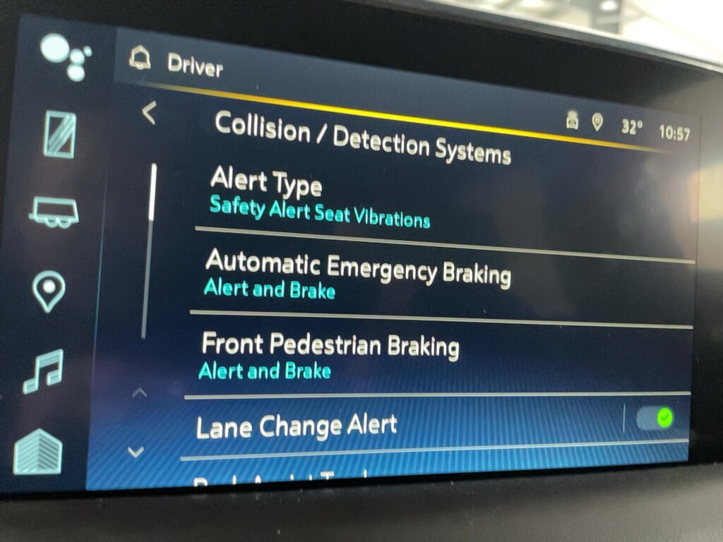 - Lane departure: Lane Keep Assist with Lane Departure Warning active