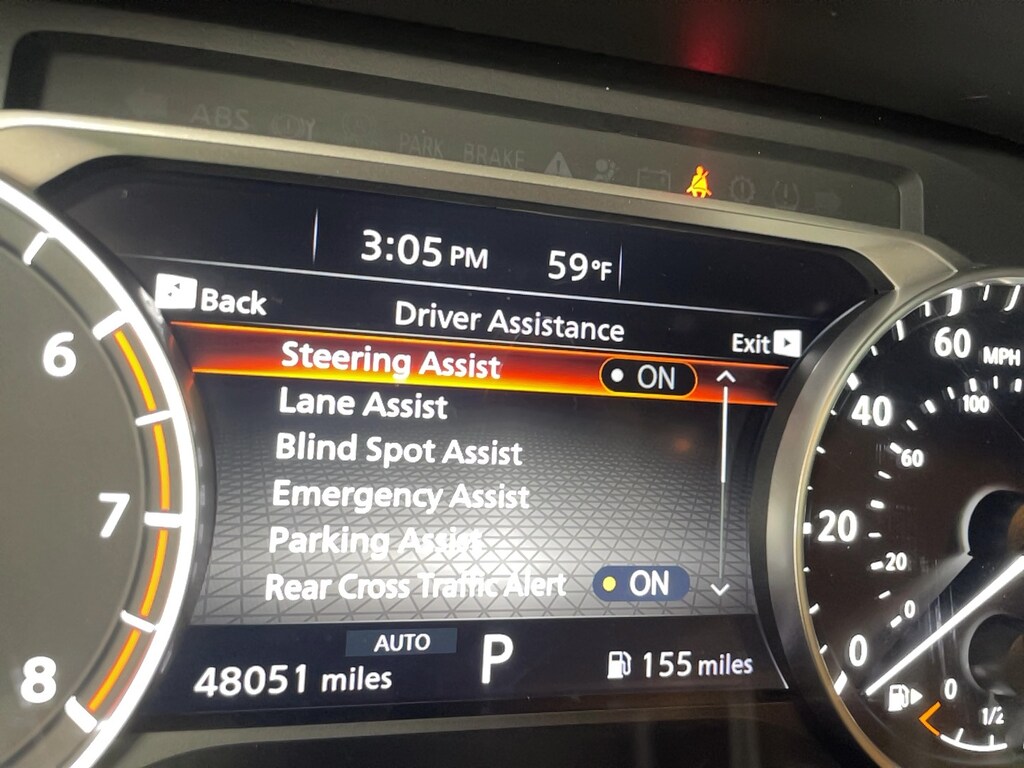 Bumper to bumper warranty up to 100k available. Ask for more details on extended warranty packages, Clean AutoCheck history., Still Under Factory Warranty, One owner vehicle., AWD, 18" Aluminum Alloy Wheels, 4-Wheel Disc Brakes, 6 Speakers, ABS brakes, Active Cruise Control, Air Conditioning, AM/FM radio: SiriusXM, Auto High-beam Headlights, Automatic temperature control, Black Splash Guards (Set of 4), Brake assist, Bumpers: body-color, Chrome Rear Bumper Protector, Delay-off headlights, Driver door bin, Driver vanity mirror, Dual front impact airbags, Dual front side impact airbags, Electronic Stability Control, Emergency communication system: NissanConnect Services, First Aid Kit, Floor Mats w/1-Piece Cargo Area Protector, Four wheel independent suspension, Frameless Rearview Mirror w/Universal Remote, Front anti-roll bar, Front Bucket Seats, Front Center Armrest, Front dual zone A/C, Front reading lights, Fully automatic headlights, Heated door mirrors, Heated Driver & Front Passenger Seats, Heated Leather Wrapped Steering Wheel, Illuminated entry, Knee airbag, Leatherette Door Trim Inserts w/Stitch, Low tire pressure warning, NissanConnect featuring Apple CarPlay and Android Auto, Occupant sensing airbag, Outside temperature display, Overhead airbag, Overhead console, Panic alarm, Panoramic Moonroof, Passenger door bin, Passenger vanity mirror, Power door mirrors, Power driver seat, Power Liftgate, Power steering, Power windows, PRIMATEX Leatherette Seat Trim, Radio data system, Rear anti-roll bar, Rear Door Sunshades, Rear Parking Sensors, Rear Personal Lights, Rear seat center armrest, Rear side impact airbag, Rear window defroster, Rear window wiper, Remote keyless entry, Retractable Cargo Cover, Security Alarm, Silver Painted Roof Rails, Speed control, Speed-Sensitive Wipers, Split folding rear seat, Spoiler, Steering wheel mounted audio controls, SV Premium B Package, Tachometer, Telescoping steering wheel, Tilt steering wheel, Traction control, Trip computer, USB Charging Cable Set - Nissan, Variably intermittent wipers.