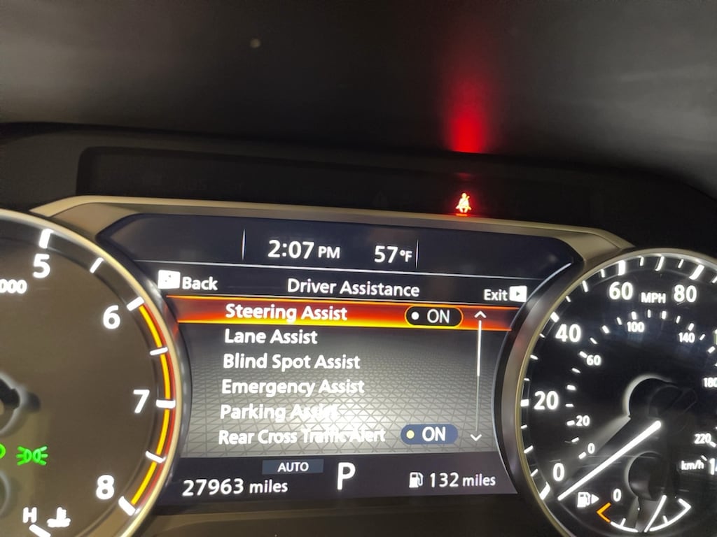 Bumper to bumper warranty up to 100k available. Ask for more details on extended warranty packages, Clean AutoCheck history., Still Under Factory Warranty, One owner vehicle., 18" Aluminum Alloy Wheels, 4-Wheel Disc Brakes, 6 Speakers, ABS brakes, Active Cruise Control, Air Conditioning, AM/FM radio: SiriusXM, Auto High-beam Headlights, Automatic temperature control, Black Splash Guards (Set of 4), Brake assist, Bumpers: body-color, Chrome Rear Bumper Protector, Delay-off headlights, Driver door bin, Driver vanity mirror, Dual front impact airbags, Dual front side impact airbags, Electronic Stability Control, Emergency communication system: NissanConnect Services, First Aid Kit, Floor Mats w/1-Piece Cargo Area Protector, Four wheel independent suspension, Front anti-roll bar, Front Bucket Seats, Front Center Armrest, Front dual zone A/C, Front reading lights, Fully automatic headlights, Heated door mirrors, Heated Driver & Front Passenger Seats, Heated Leather Wrapped Steering Wheel, Illuminated entry, Knee airbag, Leatherette Door Trim Inserts w/Stitch, Low tire pressure warning, NissanConnect featuring Apple CarPlay and Android Auto, Occupant sensing airbag, Outside temperature display, Overhead airbag, Overhead console, Panic alarm, Panoramic Moonroof, Passenger door bin, Passenger vanity mirror, Power door mirrors, Power driver seat, Power Liftgate, Power steering, Power windows, PRIMATEX Leatherette Seat Trim (DISC), Radio data system, Rear anti-roll bar, Rear Door Sunshades, Rear Parking Sensors, Rear Personal Lights, Rear seat center armrest, Rear side impact airbag, Rear window defroster, Rear window wiper, Remote keyless entry, Silver Painted Roof Rails, Speed control, Speed-Sensitive Wipers, Split folding rear seat, Spoiler, Steering wheel mounted audio controls, SV Premium Package (DISC), Tachometer, Telescoping steering wheel, Tilt steering wheel, Traction control, Trip computer, Variably intermittent wipers.