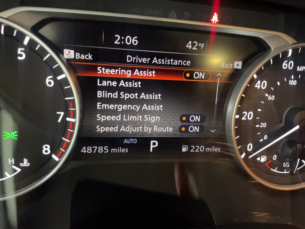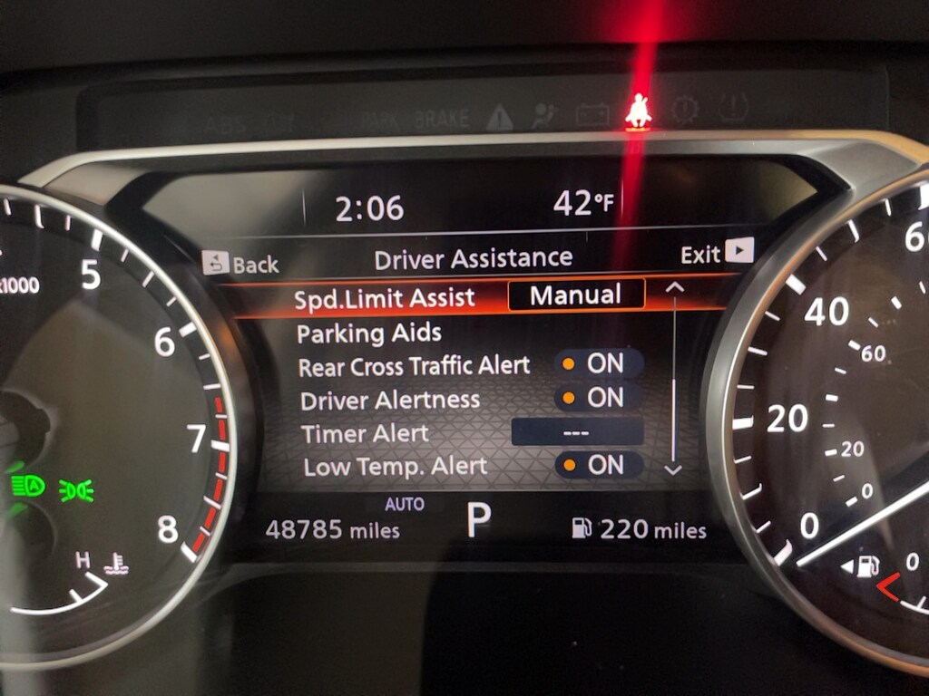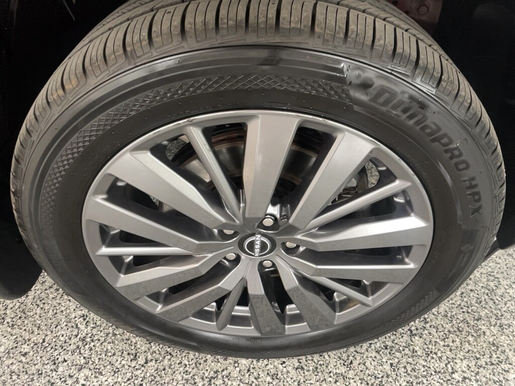 Bumper to bumper warranty up to 100k available. Ask for more details on extended warranty packages, Clean AutoCheck history., Still Under Factory Warranty, One owner vehicle., 4WD, 20" Painted Alloy Wheels, 2nd-Row Captain Chairs, 2nd-Row Rear Headrest, 3rd row seats: bench, 4-Wheel Disc Brakes, 6 Speakers, ABS brakes, Active Cruise Control, Air Conditioning, AM/FM radio: SiriusXM, Auto High-beam Headlights, Auto-dimming Rear-View mirror, Automatic temperature control, Black Appearance Package, Black Grille (K10), Black Liftgate Emblems, Black Splash Guards (Set of 4), Bose Premium Audio System, Brake assist, Bumpers: body-color, Captain's Chairs Carpeted Floor Mats (Set of 4), Delay-off headlights, Driver vanity mirror, Dual front impact airbags, Dual front side impact airbags, Electronic Stability Control, Emergency communication system, Exterior Parking Camera Rear, Four wheel independent suspension, Front anti-roll bar, Front Center Armrest, Front dual zone A/C, Front reading lights, Fully automatic headlights, Garage door transmitter: HomeLink, Heated door mirrors, Heated Front Bucket Seats, Heated Rear Seats, Heated steering wheel, Illuminated entry, Knee airbag, Leather-Appointed Seating Surfaces, Low tire pressure warning, Navigation system: NissanConnect with Navigation and Services, NissanConnect featuring Apple CarPlay and Android Auto, Occupant sensing airbag, Outside temperature display, Overhead airbag, Overhead console, Panic alarm, Panoramic Moonroof, Passenger vanity mirror, Power door mirrors, Power driver seat, Power Liftgate, Power passenger seat, Power steering, Power windows, Radio data system, Rear air conditioning, Rear anti-roll bar, Rear reading lights, Rear seat center armrest, Rear side impact airbag, Rear window defroster, Rear window wiper, Reclining 3rd row seat, Remote keyless entry, Security system, SL Premium Package, Speed control, Speed-sensing steering, Split folding rear seat, Spoiler, Steering wheel mounted audio controls, Tachometer, Telescoping steering wheel, Tilt steering wheel, Tow Hitch Receiver & Harness, Traction control, Trip computer, Turn signal indicator mirrors, Variably intermittent wipers.