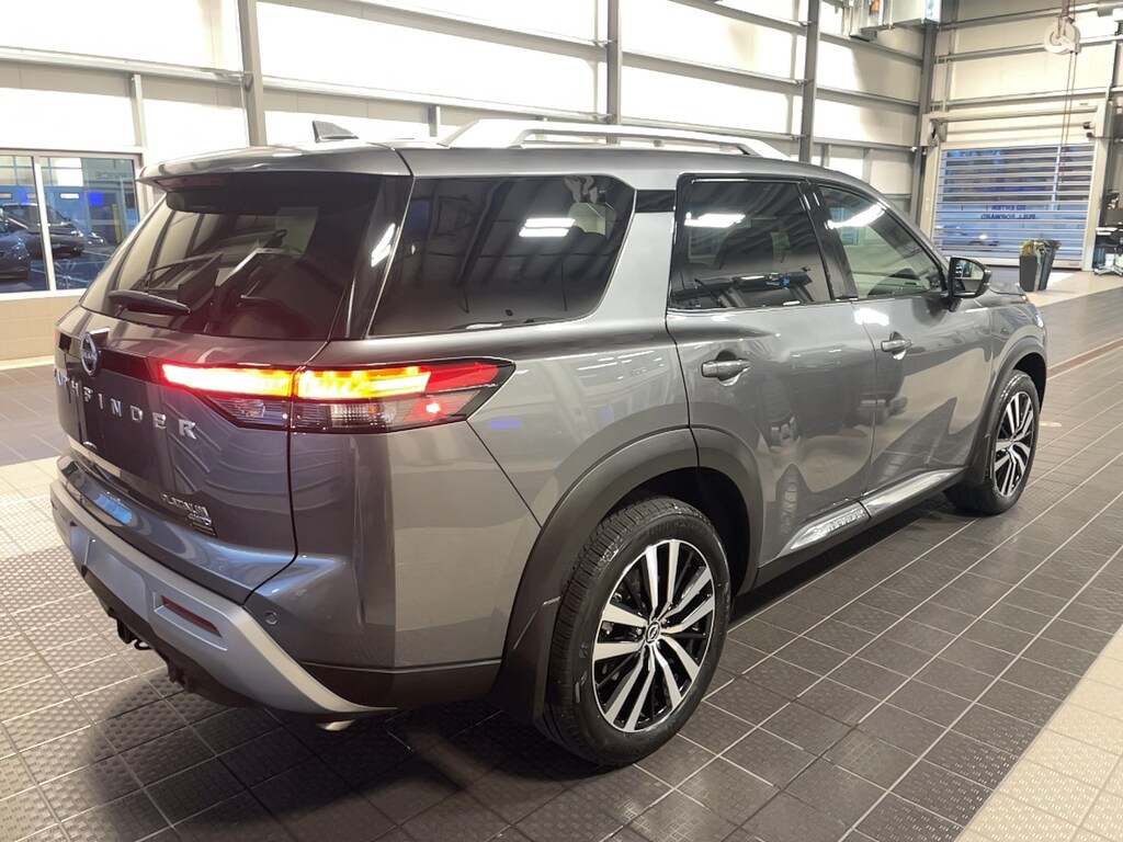 13 Speakers, 2nd-Row Captain Chairs, 2nd-Row Rear Headrest, 3rd row seats: bench, 4-Wheel Disc Brakes, ABS brakes, Active Cruise Control, Air Conditioning, AM/FM radio: SiriusXM, Auto High-beam Headlights, Auto tilt-away steering wheel, Auto-dimming Rear-View mirror, Automatic temperature control, Black Splash Guards (Set of 4), Bodyside moldings, Bose Premium Audio System, Brake assist, Bumpers: body-color, Captain's Chairs Carpeted Floor Mats (Set of 4), Cargo Area Protector, Cargo Net, Cargo Package, Climate Controlled Front Bucket Seats, Delay-off headlights, Driver door bin, Driver vanity mirror, Dual front impact airbags, Dual front side impact airbags, Electronic Stability Control, Emergency communication system, Exterior Parking Camera Rear, First Aid, Four wheel independent suspension, Front anti-roll bar, Front Center Armrest, Front dual zone A/C, Front reading lights, Fully automatic headlights, Garage door transmitter: HomeLink, Heads-Up Display, Heated door mirrors, Heated front seats, Heated rear seats, Heated steering wheel, Illuminated entry, Knee airbag, Leather steering wheel, Low tire pressure warning, Memory seat, Navigation system: NissanConnect with Navigation and Services, Nissan USB Charging Cable Set, NissanConnect featuring Apple CarPlay and Android Auto, Occupant sensing airbag, Outside temperature display, Overhead airbag, Overhead console, Panic alarm, Passenger vanity mirror, Platinum Captain Chairs Package, Power door mirrors, Power driver seat, Power Liftgate, Power moonroof, Power passenger seat, Power steering, Power windows, Radio data system, Radio: AM/FM Audio System, Rain sensing wipers, Rear air conditioning, Rear anti-roll bar, Rear reading lights, Rear seat center armrest, Rear side impact airbag, Rear window defroster, Rear window wiper, Reclining 3rd row seat, Remote keyless entry, Security system, Semi-Aniline Leather-Appointed Seating Surfaces, Speed control, Speed-sensing steering, Speed-Sensitive Wipers, Split folding rear seat, Spoiler, Steering wheel memory, Steering wheel mounted audio controls, Tachometer, Telescoping steering wheel, Tilt steering wheel, Traction control, Trip computer, Turn signal indicator mirrors, Variably intermittent wipers, Ventilated front seats, Wheels: 20" x 8J Machined Alloy.