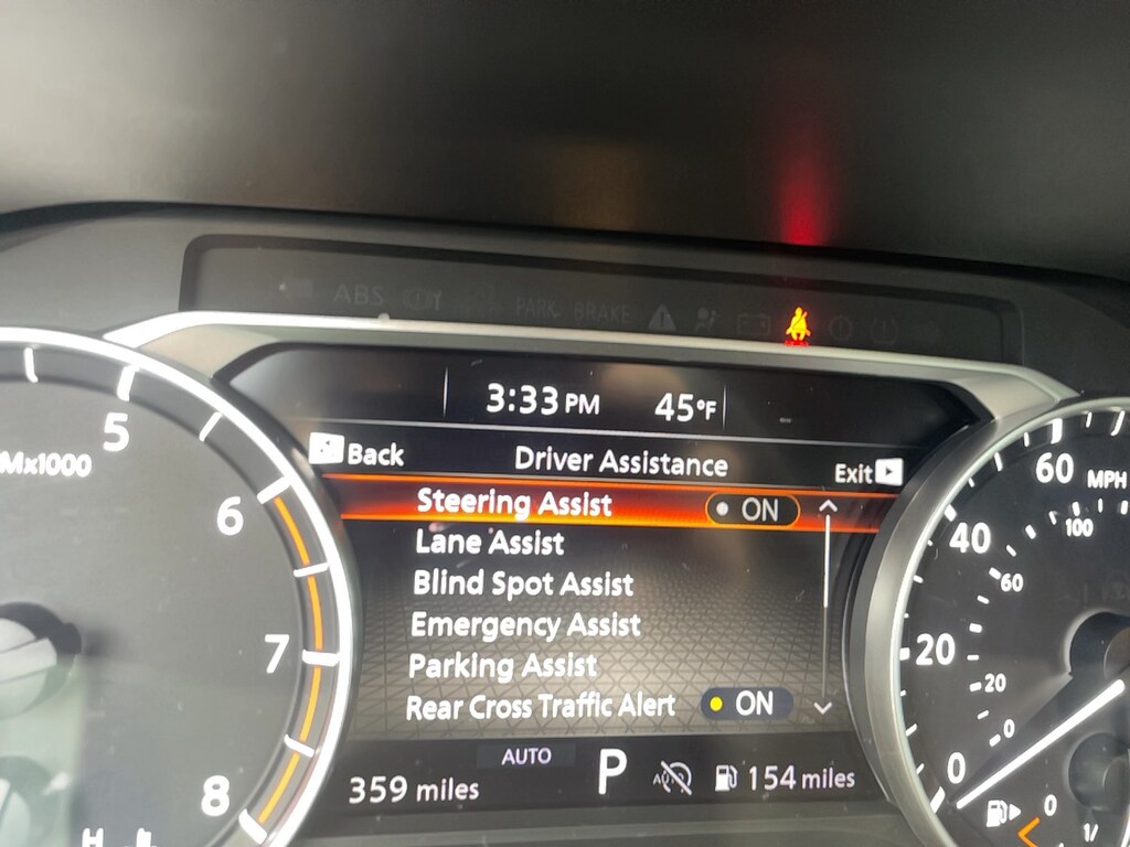 Bumper to bumper warranty up to 100k available. Ask for more details on extended warranty packages, Clean AutoCheck history., Still Under Factory Warranty, One owner vehicle., AWD, 4-Wheel Disc Brakes, 6 Speakers, ABS brakes, Active Cruise Control, Air Conditioning, AM/FM radio: SiriusXM, Android Auto and Apple CarPlay, Auto High-beam Headlights, Automatic temperature control, Black Splash Guards (set of 4), Brake assist, Bumpers: body-color, Chrome Rear Bumper Protector, Cloth Seat Trim with Patterned Inserts, Delay-off headlights, Driver door bin, Driver vanity mirror, Dual front impact airbags, Dual front side impact airbags, Electronic Stability Control, Emergency communication system: NissanConnect Services, First Aid Kit, Floor Mats with 1-Piece Cargo Area Protector, Four wheel independent suspension, Front anti-roll bar, Front Bucket Seats, Front Bucket Seats with 8-Way Power Driver Seat, Front Center Armrest, Front dual zone A/C, Front reading lights, Fully automatic headlights, Heated door mirrors, Illuminated entry, Knee airbag, Low tire pressure warning, Occupant sensing airbag, Outside temperature display, Overhead airbag, Overhead console, Panic alarm, Passenger door bin, Passenger vanity mirror, Power door mirrors, Power driver seat, Power Liftgate, Power steering, Power windows, Radio data system, Radio: NissanConnect with 6 Speakers, Rear anti-roll bar, Rear seat center armrest, Rear side impact airbag, Rear window defroster, Rear window wiper, Remote keyless entry, Speed control, Speed-sensing steering, Speed-Sensitive Wipers, Spoiler, Steering wheel mounted audio controls, Tachometer, Telescoping steering wheel, Tilt steering wheel, Traction control, Trip computer, Variably intermittent wipers, Wheels: 18" Dark Painted Machine Finished Alloy.