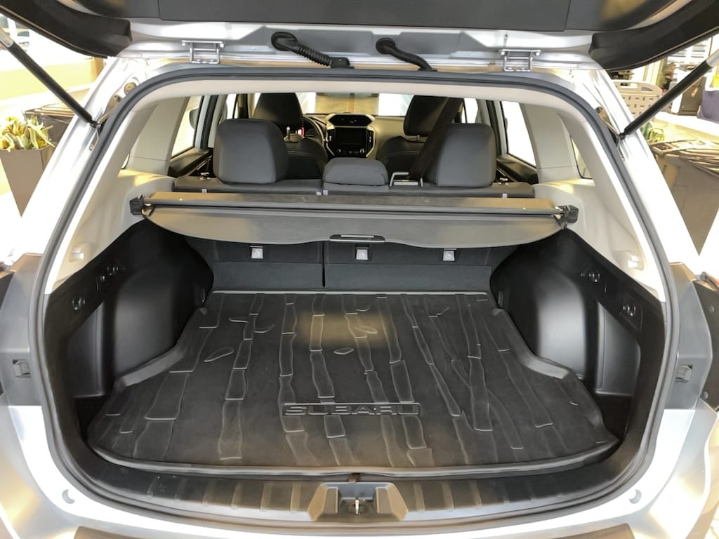 Bumper to bumper warranty up to 100k available. Ask for more details on extended warranty packages, Clean AutoCheck history., One owner vehicle, bought from and serviced at Anchor Subaru., 4 Speakers, 4-Wheel Disc Brakes, ABS brakes, Active Cruise Control, Air Conditioning, Alloy Wheel Package, AM/FM radio: SiriusXM, Automatic temperature control, Black Finish Roof Rails, Brake assist, Bumpers: body-color, CD player, Cloth Upholstery, Driver door bin, Driver vanity mirror, Dual front impact airbags, Dual front side impact airbags, Electronic Stability Control, Exterior Parking Camera Rear, Four wheel independent suspension, Front anti-roll bar, Front Bucket Seats, Front Center Armrest, Front reading lights, Fully automatic headlights, Illuminated entry, Knee airbag, Low tire pressure warning, Occupant sensing airbag, Outside temperature display, Overhead airbag, Overhead console, Panic alarm, Passenger door bin, Passenger vanity mirror, Power door mirrors, Power steering, Power windows, Radio data system, Radio: Subaru Starlink 6.5" Multimedia Plus System, Rear anti-roll bar, Rear Bumper Cover, Rear window defroster, Rear window wiper, Remote keyless entry, Security system, Speed control, Speed-sensing steering, Splash Guards, Split folding rear seat, STARLINK/Apple CarPlay/Android Auto, Steering wheel mounted audio controls, Tachometer, Telescoping steering wheel, Tilt steering wheel, Traction control, Trip computer, Variably intermittent wipers, Wheels: 17" x 7.0J Silver Finish Aluminum Alloy.