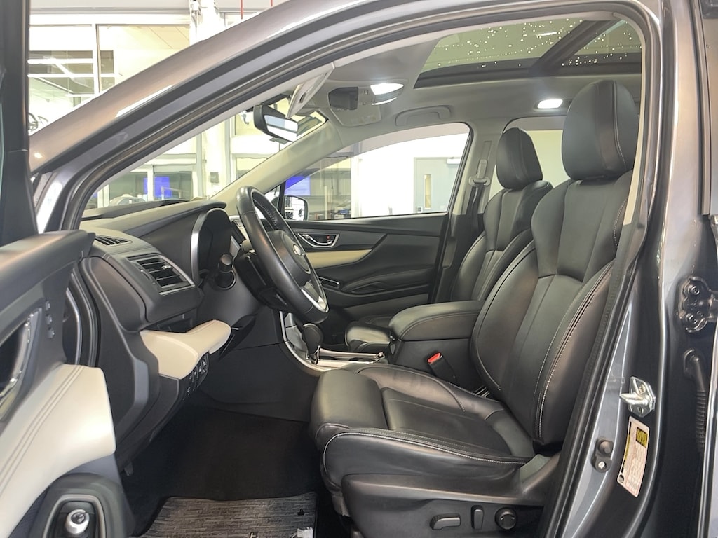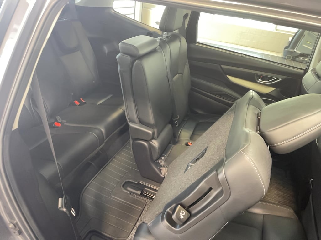 Bumper to bumper warranty up to 100k available. Ask for more details on extended warranty packages, Clean AutoCheck history., One owner vehicle, bought from and serviced at Anchor Subaru., 4-Wheel Disc Brakes, 6 Speakers, ABS brakes, Active Cruise Control, Air Conditioning, AM/FM radio: SiriusXM, Auto High-beam Headlights, Auto-dimming Rear-View mirror, Automatic temperature control, Brake assist, Bumpers: body-color, Cargo Area Cover, CD player, Compass, Delay-off headlights, Driver door bin, Driver vanity mirror, Dual front impact airbags, Dual front side impact airbags, Dual Glass Panoramic Power Moonroof, Electronic Stability Control, Emergency communication system: STARLINK Safety and Security (Subscription Required), Exterior Parking Camera Rear, Four wheel independent suspension, Front anti-roll bar, Front Bucket Seats, Front Center Armrest, Front dual zone A/C, Front fog lights, Front reading lights, Fully automatic headlights, Garage door transmitter: HomeLink, Heated door mirrors, Heated Front Bucket Seats, Heated rear seats, Heated steering wheel, Illuminated entry, Knee airbag, Low tire pressure warning, Memory seat, Navigation System, Occupant sensing airbag, Outside temperature display, Overhead airbag, Overhead console, Panic alarm, Passenger door bin, Passenger vanity mirror, Perforated Leather-Trimmed Upholstery, Power door mirrors, Power driver seat, Power Liftgate, Power passenger seat, Power steering, Power windows, Radio data system, Radio: Subaru STARLINK 8.0" Multimedia Nav System, Rear air conditioning, Rear anti-roll bar, Rear Bumper Cover, Rear reading lights, Rear seat center armrest, Rear window defroster, Rear window wiper, Reclining 3rd row seat, Remote keyless entry, Security system, Speed control, Splash Guards, Split folding rear seat, Spoiler, STARLINK/Apple CarPlay/Android Auto, Steering wheel mounted audio controls, Tachometer, Technology Package, Telescoping steering wheel, Tilt steering wheel, Traction control, Trip computer, Turn signal indicator mirrors, Variably intermittent wipers, Wheels: 20" x 7.5 J Dk Gray Alloy w/Machine Finish.