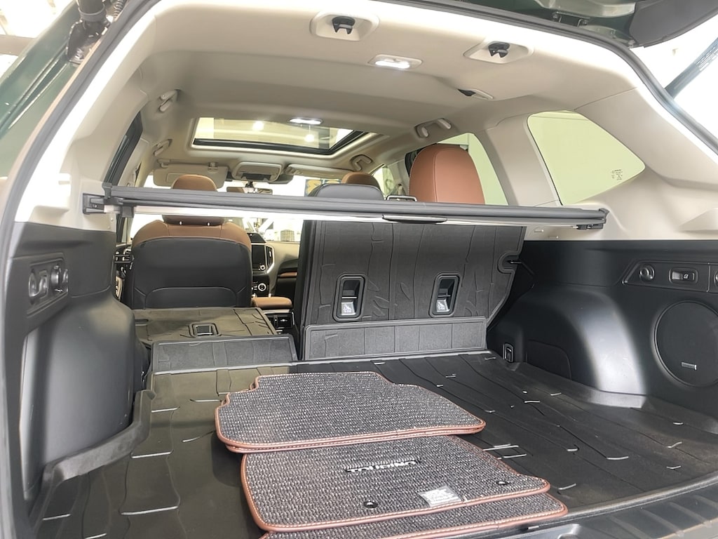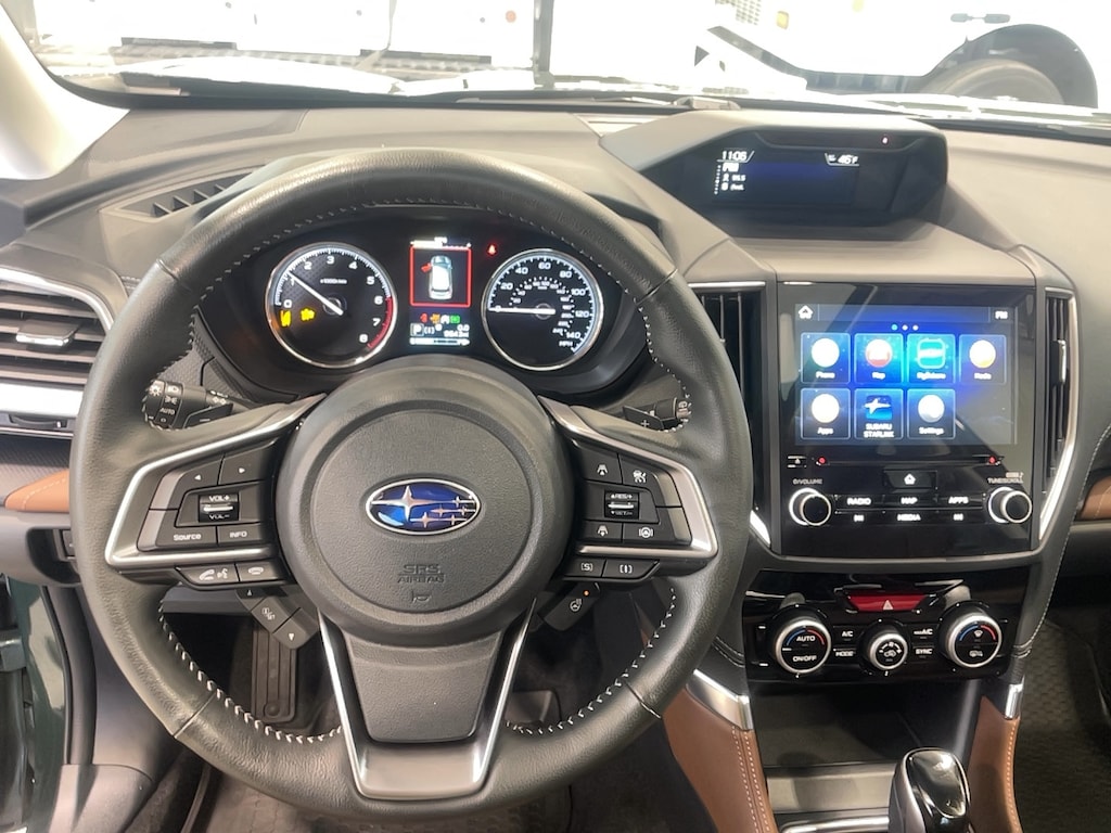 Bumper to bumper warranty up to 100k available. Ask for more details on extended warranty packages, Clean AutoCheck history., Still Under Factory Warranty, One owner vehicle., 4-Wheel Disc Brakes, 9 Speakers, ABS brakes, Active Cruise Control, Air Conditioning, AM/FM radio: SiriusXM, Anti-whiplash front head restraints, Auto High-beam Headlights, Automatic temperature control, Brake assist, Bumpers: body-color, CD player, Driver door bin, Driver vanity mirror, Dual front impact airbags, Dual front side impact airbags, Electronic Stability Control, Emergency communication system: STARLINK Safety and Security (Subscription Required), Exterior Parking Camera Rear, Four wheel independent suspension, Front anti-roll bar, Front Center Armrest, Front dual zone A/C, Front fog lights, Front reading lights, Fully automatic headlights, harman/kardon 9-Speaker Audio System, harman/kardon® Speakers, Heated door mirrors, Heated Front Bucket Seats, Heated rear seats, Heated steering wheel, HVAC memory, Illuminated entry, Knee airbag, Leather Shift Knob, Low tire pressure warning, Memory seat, Navigation System, Occupant sensing airbag, Outside temperature display, Overhead airbag, Overhead console, Panic alarm, Passenger vanity mirror, Perforated Leather-Trimmed Upholstery, Power door mirrors, Power driver seat, Power Liftgate, Power moonroof: Panoramic, Power passenger seat, Power steering, Power windows, Premium audio system: harman/kardon, Radio data system, Radio: Subaru Starlink 8.0" Multimedia Nav System, Rear anti-roll bar, Rear seat center armrest, Rear window defroster, Rear window wiper, Remote keyless entry, Roof rack: rails only, Security system, Speed control, Speed-sensing steering, Split folding rear seat, Spoiler, STARLINK/Apple CarPlay/Android Auto, Steering wheel mounted audio controls, Tachometer, Telescoping steering wheel, Tilt steering wheel, Traction control, Trip computer, Turn signal indicator mirrors, Variably intermittent wipers, Wheels: 18" x 7.0 J Dark Gray Machine Finish Alloy.