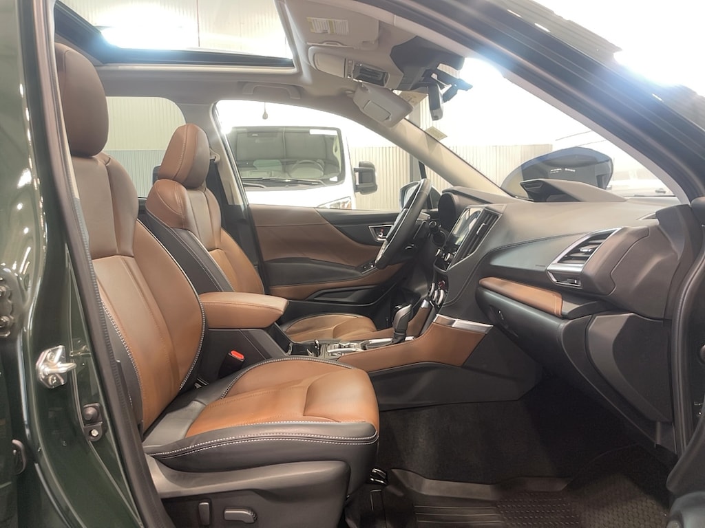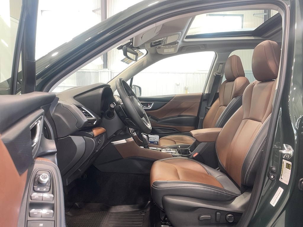 9K MILES....33 MPG, ALL WHEEL DRIVE, EYESIGHT PRE-COLLISION AND ADAPTIVE SPEED CONTROL SYSTEM, MOON ROOF, APPLE/ANDROID CARPLAY, NAVIGATION, HEATED STEERING WHEEL, HARMAN KARDON AUDIO, BLIND SPOT SENSORS, REAR CROSS TRAFFIC ALERT, HEATED LEATHER SEATS, POWER LIFT GATE, REVERSE AUTO BRAKING, BLUETOOTH, REAR VIEW CAMERA, ALLOY WHEELS, POWER SEATS, AUTO CLIMATE CONTROL, KEYLESS ENTRY....FINISHED IN CASCADE GREEN SILICA OVER SADDLE BROWN LEATHER....