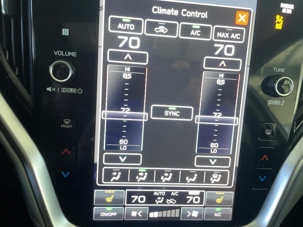 Bumper to bumper warranty up to 100k available. Ask for more details on extended warranty packages, Clean AutoCheck history., Still Under Factory Warranty, One owner vehicle, bought from and serviced at Anchor Subaru., 4-Wheel Disc Brakes, 6 Speakers, ABS brakes, Active Cruise Control, Air Conditioning, AM/FM radio: SiriusXM, Auto High-beam Headlights, Auto-dimming Rear-View mirror, Automatic temperature control, Brake assist, Bumpers: body-color, Compass, Driver door bin, Driver vanity mirror, Dual front impact airbags, Dual front side impact airbags, Electronic Stability Control, Emergency communication system: STARLINK Safety Plus (3-year free trial), Exterior Parking Camera Rear, Four wheel independent suspension, Front anti-roll bar, Front Center Armrest w/Storage, Front dual zone A/C, Front fog lights, Front reading lights, Fully automatic headlights, Garage door transmitter: HomeLink, Heated door mirrors, Heated Front Bucket Seats, Illuminated entry, Knee airbag, Leather Shift Knob, Leather steering wheel, Low tire pressure warning, Navigation System, Occupant sensing airbag, Outside temperature display, Overhead airbag, Overhead console, Panic alarm, Passenger door bin, Passenger vanity mirror, Power door mirrors, Power driver seat, Power Liftgate, Power Moonroof, Power Moonroof & Navigation & RAB, Power steering, Power windows, Radio: Subaru STARLINK 11.6" Multimedia Nav System, Rear anti-roll bar, Rear seat center armrest, Rear window defroster, Rear window wiper, Remote keyless entry, Reverse Automatic Braking (RAB) System, Roof rack, Security system, Speed control, Speed-sensing steering, Split folding rear seat, Spoiler, StarTex-Trimmed Upholstery, Steering wheel mounted audio controls, Steering Wheel Paddle Shift Control Switches, Tachometer, Telescoping steering wheel, Tilt steering wheel, Traction control, Trip computer, Turn signal indicator mirrors, Variably intermittent wipers, Wheels: 18" x 7J Black Aluminum Alloy.