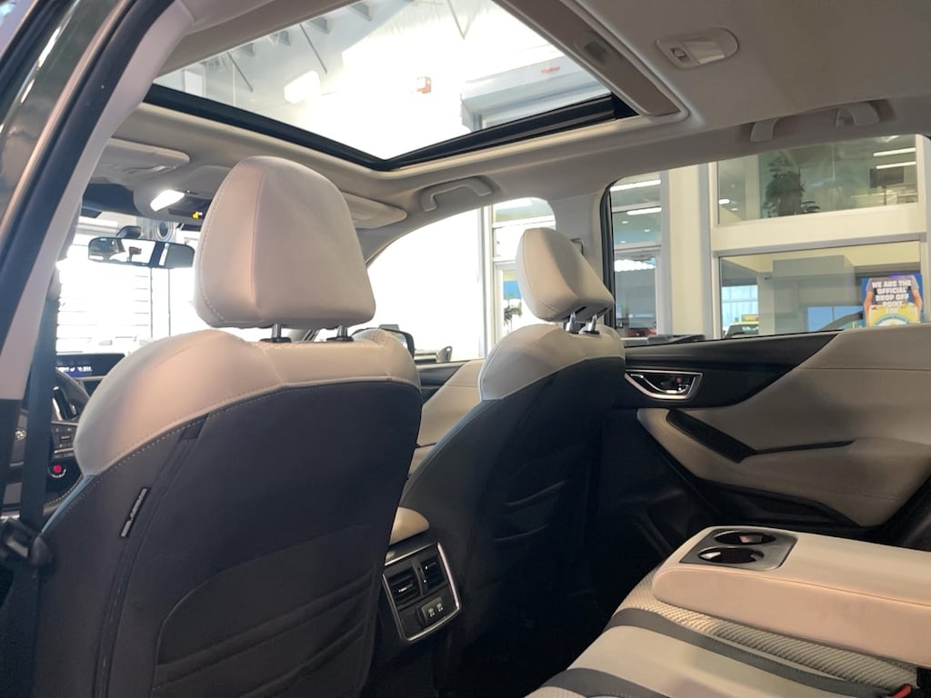 Bumper to bumper warranty up to 100k available. Ask for more details on extended warranty packages, Clean AutoCheck history., Still Under Factory Warranty, One owner vehicle., 4-Wheel Disc Brakes, 6 Speakers, ABS brakes, Active Cruise Control, Air Conditioning, AM/FM radio: SiriusXM, Anti-whiplash front head restraints, Auto High-beam Headlights, Automatic temperature control, Blind Spot Detection w/RCTA & Power Rear Gate, Blind-Spot Detection (BSD), Brake assist, Bumpers: body-color, Driver door bin, Driver vanity mirror, Driver's Seatback Divided Pocket, Dual front impact airbags, Dual front side impact airbags, Dual USB Charge Ports, Electronic Stability Control, Emergency communication system: STARLINK Safety and Security (Subscription Required), Exterior Parking Camera Rear, EyeSight System, Four wheel independent suspension, Front anti-roll bar, Front Center Armrest, Front fog lights, Front reading lights, Fully automatic headlights, Heated door mirrors, Heated Front Bucket Seats, Illuminated entry, Knee airbag, Leather steering wheel, Low tire pressure warning, Multi-Function High Grade Display, Occupant sensing airbag, Outside temperature display, Overhead airbag, Overhead console, Panic alarm, Passenger door bin, Passenger vanity mirror, Power door mirrors, Power driver seat, Power moonroof: Panoramic, Power Rear Gate, Power steering, Power windows, Premium Cloth Upholstery, Radio data system, Radio: Subaru STARLINK 6.5" Multimedia Plus System, Rear anti-roll bar, Rear seat center armrest, Rear window defroster, Rear window wiper, Remote keyless entry, Roof rack: rails only, Security system, Speed control, Speed-sensing steering, Split folding rear seat, Spoiler, STARLINK/Apple CarPlay/Android Auto, Steering wheel mounted audio controls, Tachometer, Telescoping steering wheel, Tilt steering wheel, Traction control, Trip computer, Variably intermittent wipers, Wheels: 17" x 7.0 J Black Machine Finish Alloy.