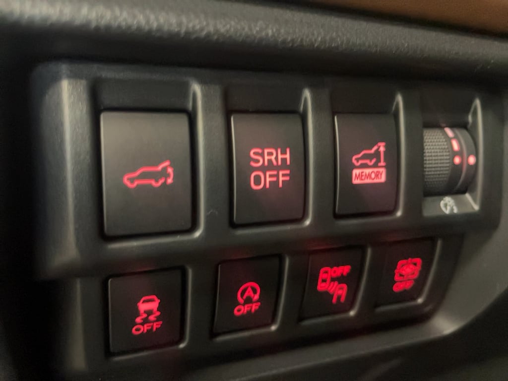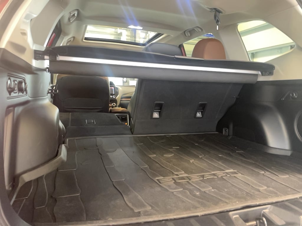 Bumper to bumper warranty up to 100k available. Ask for more details on extended warranty packages, Clean AutoCheck history., Still Under Factory Warranty, One owner vehicle, bought from and serviced at Anchor Subaru., 4-Wheel Disc Brakes, 9 Speakers, ABS brakes, Active Cruise Control, Air Conditioning, AM/FM radio: SiriusXM, Anti-whiplash front head restraints, Auto High-beam Headlights, Automatic temperature control, Brake assist, Bumpers: body-color, Driver door bin, Driver vanity mirror, Dual front impact airbags, Dual front side impact airbags, Electronic Stability Control, Emergency communication system: STARLINK Safety and Security (Subscription Required), Exterior Parking Camera Rear, Four wheel independent suspension, Front anti-roll bar, Front Center Armrest, Front dual zone A/C, Front fog lights, Front reading lights, Fully automatic headlights, harman/kardon 9-Speaker Audio System, harman/kardon® Speakers, Heated door mirrors, Heated Front Bucket Seats, Heated rear seats, Heated steering wheel, HVAC memory, Illuminated entry, Knee airbag, Leather Shift Knob, Leather steering wheel, Low tire pressure warning, Memory seat, Navigation System, Occupant sensing airbag, Outside temperature display, Overhead airbag, Overhead console, Panic alarm, Passenger door bin, Passenger vanity mirror, Perforated Leather-Trimmed Upholstery, Power door mirrors, Power driver seat, Power Liftgate, Power moonroof: Panoramic, Power passenger seat, Power steering, Power windows, Radio data system, Radio: Subaru STARLINK 8.0" Multimedia Nav System, Rear anti-roll bar, Rear seat center armrest, Rear window defroster, Rear window wiper, Remote keyless entry, Roof rack: rails only, Security system, Speed control, Speed-sensing steering, Split folding rear seat, Spoiler, STARLINK/Apple CarPlay/Android Auto, Steering wheel mounted audio controls, Tachometer, Telescoping steering wheel, Tilt steering wheel, Traction control, Trip computer, Turn signal indicator mirrors, Variably intermittent wipers, Wheels: 18" x 7.0 J Dark Gray Machine Finish Alloy.